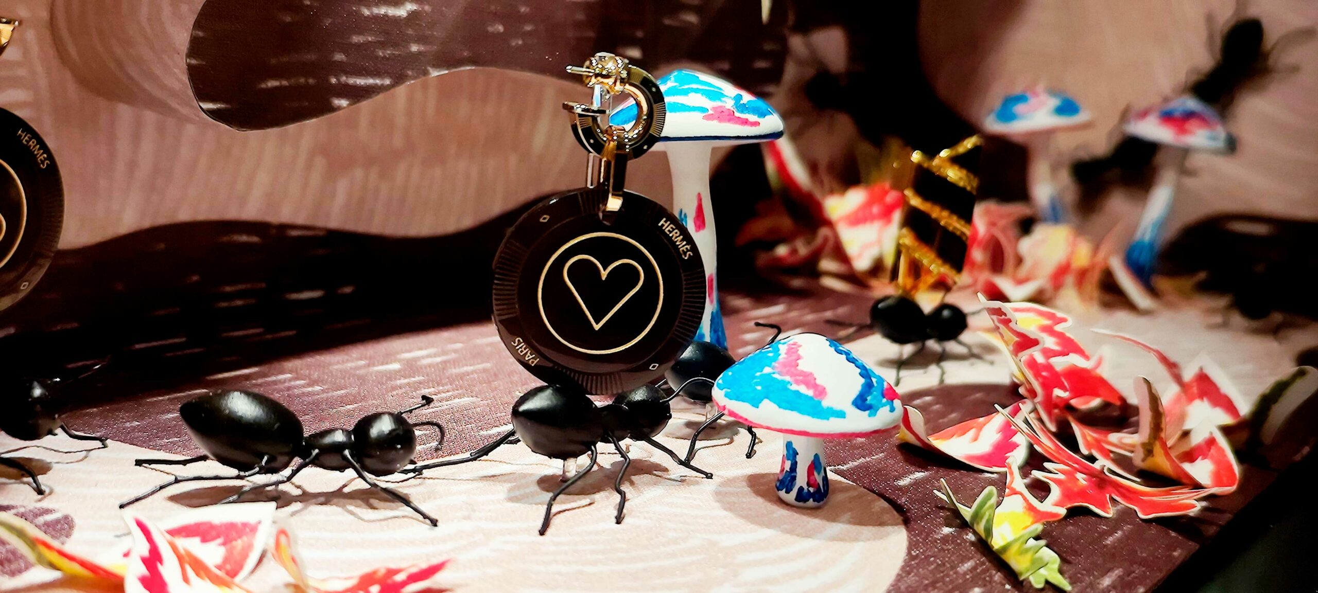 Decoración con abejas para el escaparate de una boutique Hermès