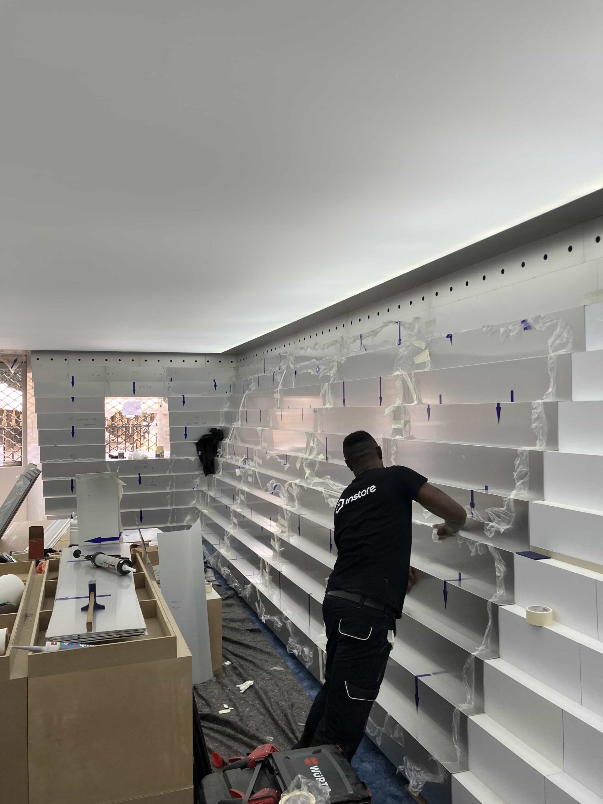 Un pop up temporal diseñado para 4 meses que finalmente se va a alagar en el tiempo y que se planteó desde su inicio con un reto clave, no modificar el espacio en lo más mínimo, las paredes son patrimonio nacional así que tuvimos que idear una estructura que no se anclase ni a techo ni a suelo ni a paredes, nada se podía dañar, la producción del diseño que nos daba Harry Nuriev tenía que estar muy pensada para que el resultado fuese el esperado.